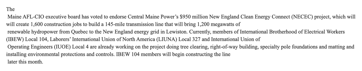 inbox: the Maine AFL-CIO endorses the Central Maine Power Corridor. That, coupled with the lifted injunction, makes it a pretty good day for CMP.