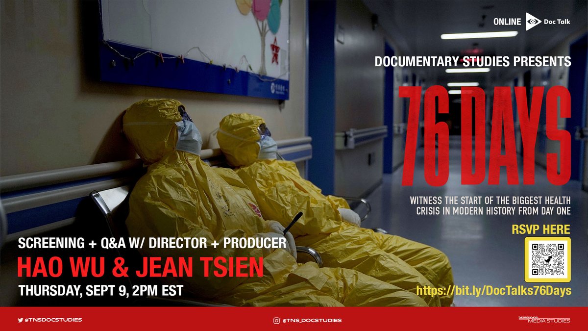 9/9: Join us online at @TheNewSchool for 76 Days Screening and Q&A with director Hao Wu and producer Jean Tsien. _ Set deep inside the frontlines of the crisis in four hospitals, 76 Days tells indelible human stories at the center of this pandemic.