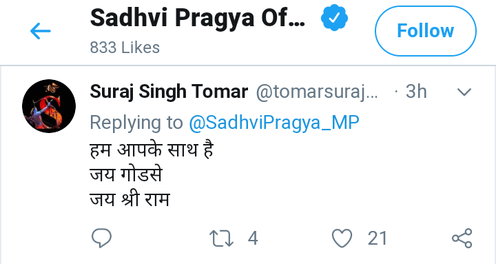 #प्रज्ञा_ठाकुर_भारत_छोड़ो#TerroristPragyaThakur - Još 1 odgovor