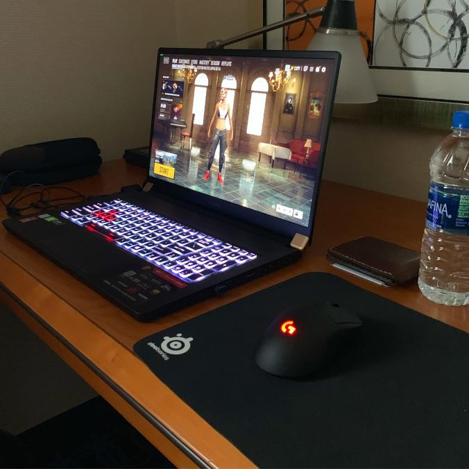 Travel setup coming in clutch thanks to @msitweets @LogitechG @SteelSeries Gotta get my #PUBG fix when on the road for work 🔥🍗🔥 #GS75 #MSIGaming #GProWireless #SteelSeriespic.twitter.com/kyTZ6no8dB