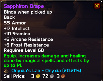I've been waiting many weeks for this to drop and to get my shot at it Well it dropped. And I was awarded it! 🔥 I also got lucky on the rolls for the Onyxia's Bag and Sapphiron Drape, wtf! I love #WoWClassic & the people I've met raiding <RELAX> on Faerlina-US Cheers 🍻pic.twitter.com/chNZBN0yUv