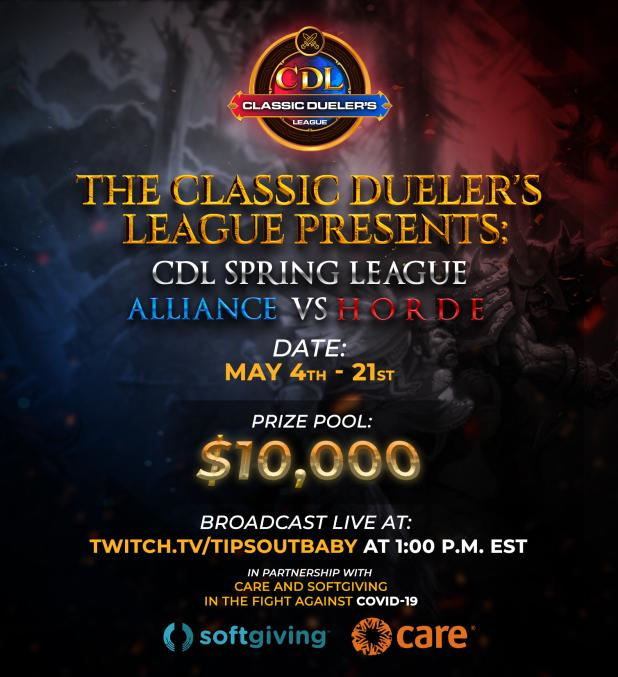 After months of quiet, the drums of war thunder once again... We are proud finally to announce the return of the Classic Dueler's League, this time, CROSS-FACTION! Join us TOMORROW, May 4th, as groups are drawn and the Alliance and Horde prepare for battle! #CDL #1v1COVIDpic.twitter.com/kBlp8cS5Tq