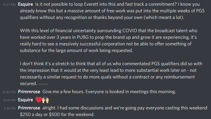 I'd be fascinated to see a similar message to mine, from you to PUBG Corp, where you "made sure it was" April 30th, 48 hours prior to the broadcast for Week 1.pic.twitter.com/73UtQKKIhj
