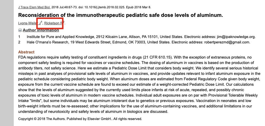 Here is the awful "study" on aluminum in vaccines he was co-author on with anti-vax charlatan & profiteer James Lyons-Weiler. https://www.ncbi.nlm.nih.gov/pubmed/29773196 pic.twitter.com/E8kHuxx27R
