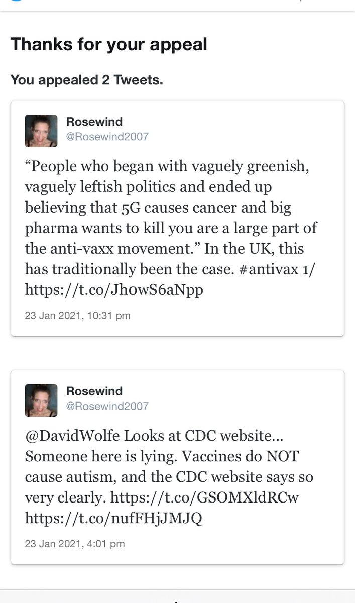 #antivaxxers After two days I gave up my appeal and deleted:pic.twitter.com/EdDt4dy2el