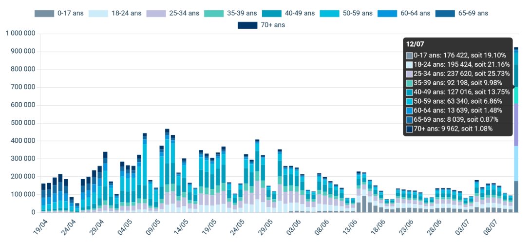 French bookings for vaccinations over time. Spot the day Emmanuel Macron told the nation that if they weren't double-vaxxed, they couldn't go into a cafe.https://twitter.com/nicolasberrod/status/1414835364519456772 …