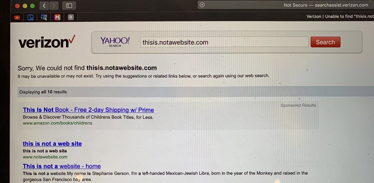 @VerizonSupport - not cool hijacking my web traffic to send me advertising when I get 404 pages. How do I disable this? And when do you send me the check for me cut of the money I make you for this?pic.twitter.com/ZiiSe650bI