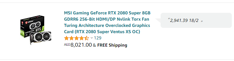 In order to understand just how inflated GPU prices are right now: I bought this in 18/2/2020 for 2,941 AED (799.99$) and now it is 8021 AED (2179.99$).pic.twitter.com/bKWpuao3h6