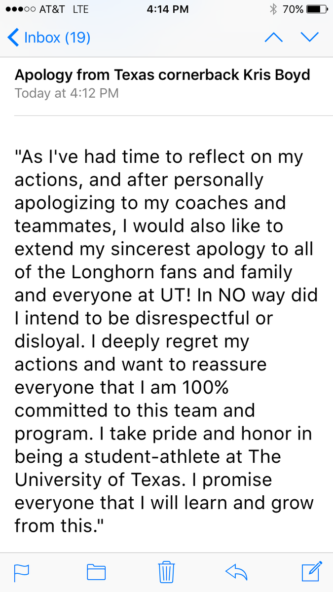 Full text of Kris Boyd statement, from UT.pic.twitter.com/xROLgch3v2