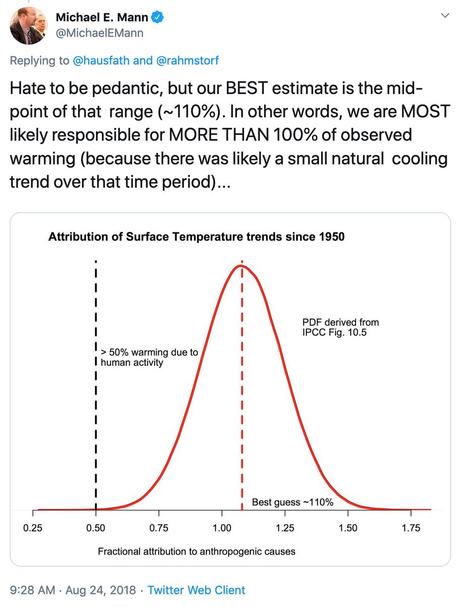 I hate to be pedantic (again), but our best estimate is that MORE than 100% of the warming is due to human activity: https://twitter.com/MichaelEMann/status/1032982976857075713 … https://twitter.com/hausfath/status/1221882374796935168 …pic.twitter.com/Dpdz3tkWn9