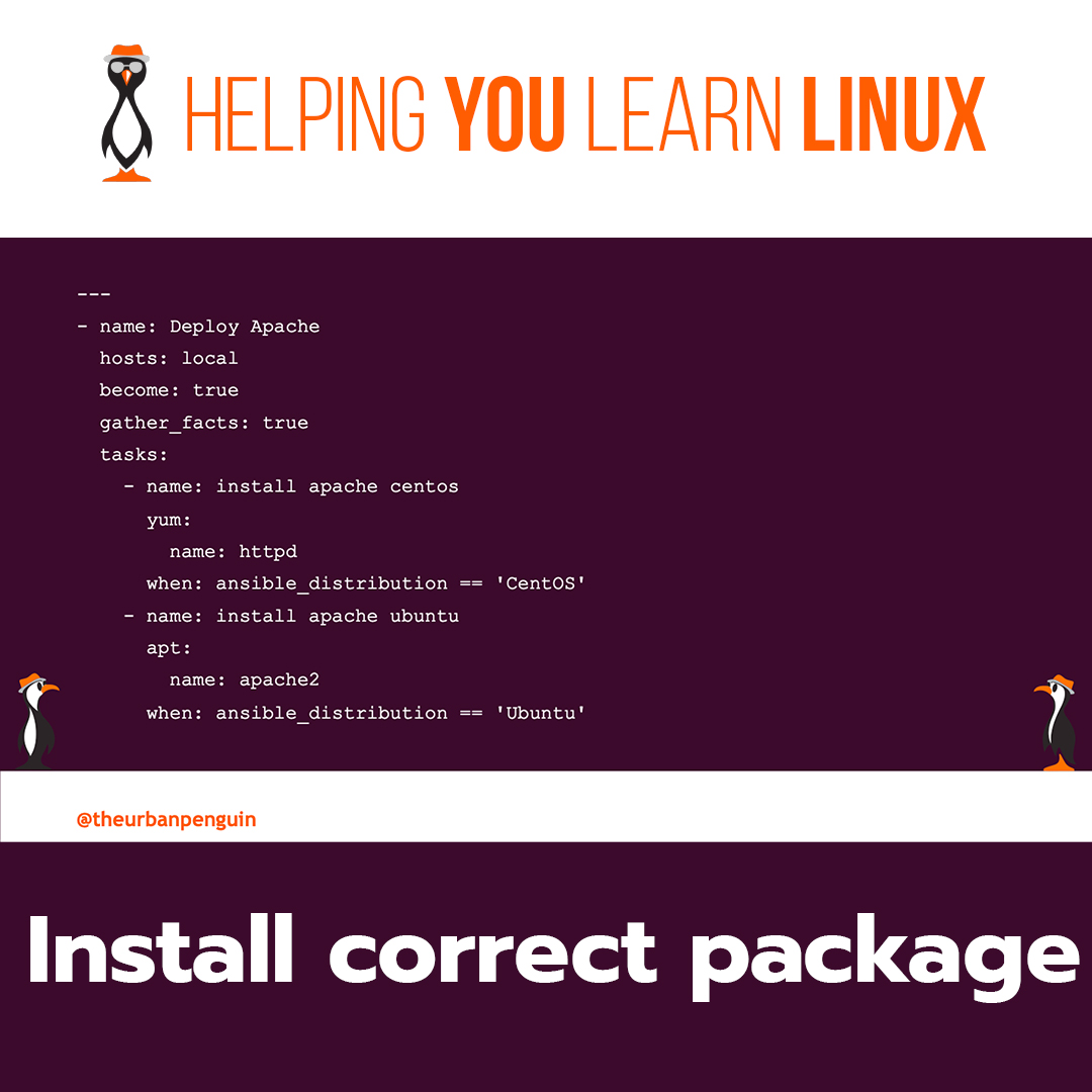 #Ansible : use the package module, not the yum/apt module which are distribution dependent. Using the package module the correct packaging system will be detected and allows cross platform tasks. We demo on Ubuntu and Red Hat https://youtu.be/77rK-mP0dCA pic.twitter.com/34PK1HWOSl
