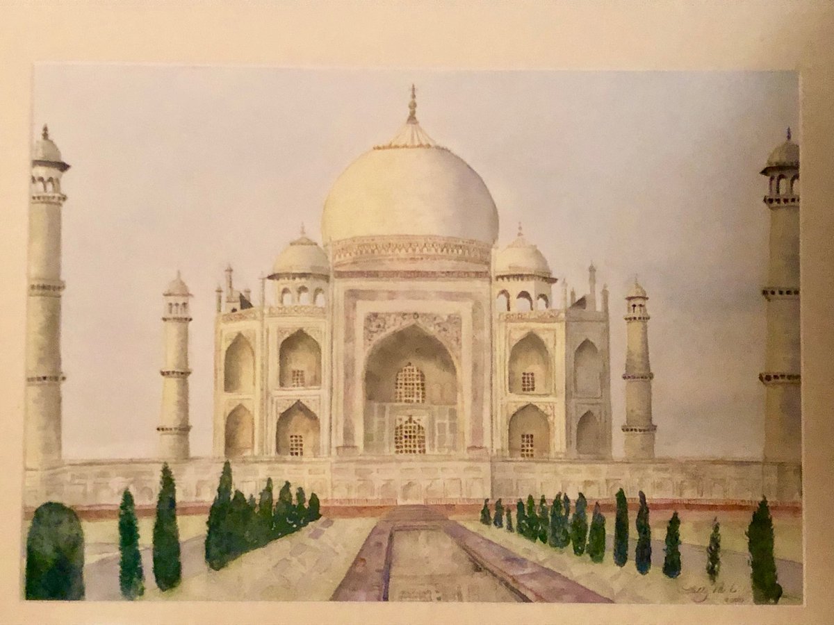Mumtaz Mahal was born April 27, 1593, to finally rest here. Sally Parks rendered a detailed watercolor filigree, after her visit to Agra. It hangs in our home.pic.twitter.com/KxtTWCTJcm