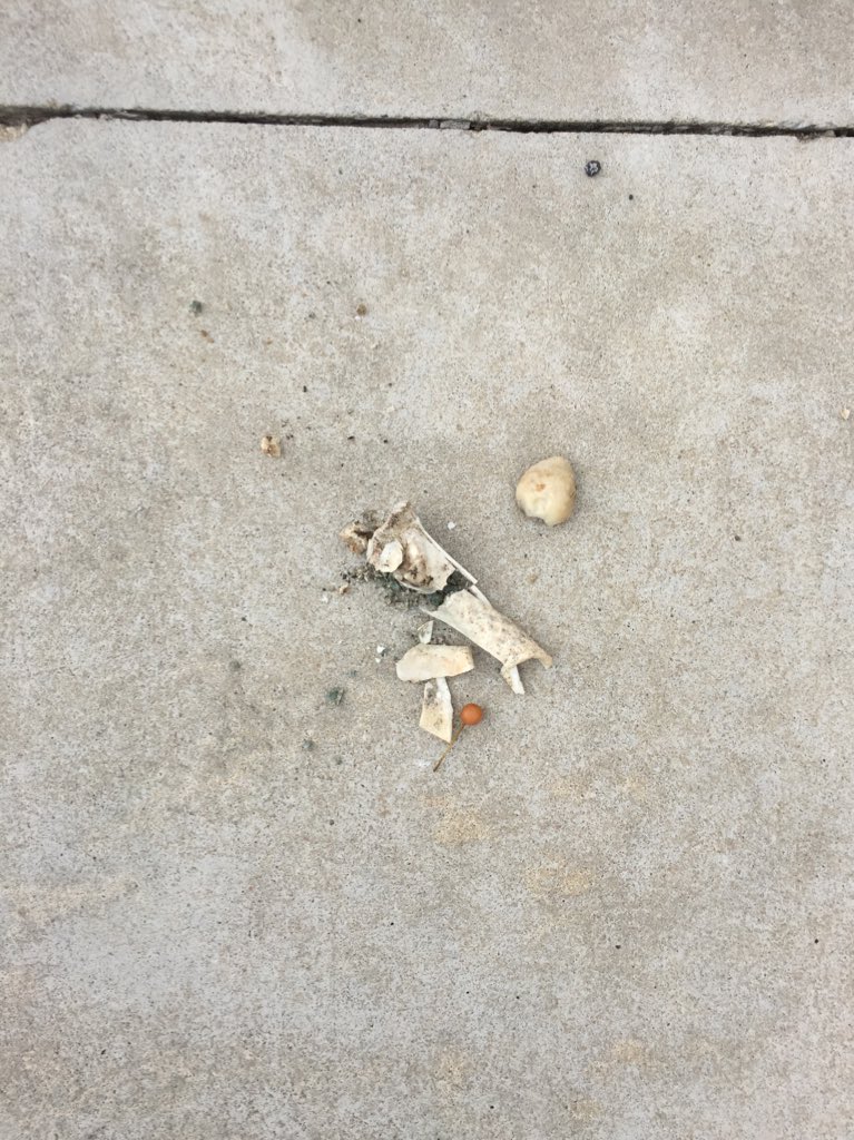 Spotted in my driveway: the neighbourhood crows are leaving out bones for the cars to break.pic.twitter.com/MULo825bBR