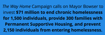 Will we see you tonight as @MayorBowser kicks off her Budget Engagement Forums? This is your chance to tell her that, with a budget of $15.5 billion, DC can and must do more to end chronic homelessness.