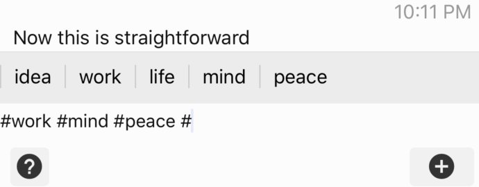 These two who voted for hashtag input interface. I agree. What’s the sleekest hash autocomplete you’ve seen? Twitter’s is decent. DayOne pretty bloated as their other features.