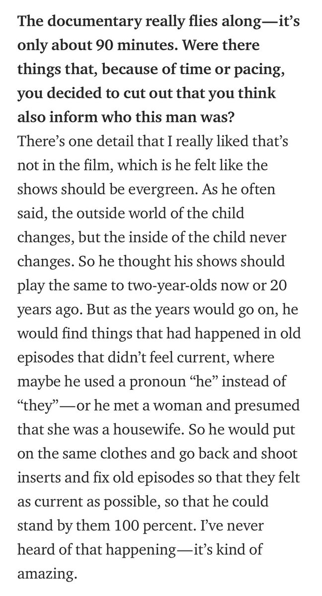 Mr Rogers would reshoot outdated shows https://melmagazine.com/mr-rogers-and-why-kind-men-freak-us-out-81395fbe3e22 …pic.twitter.com/zlR8e91WI6