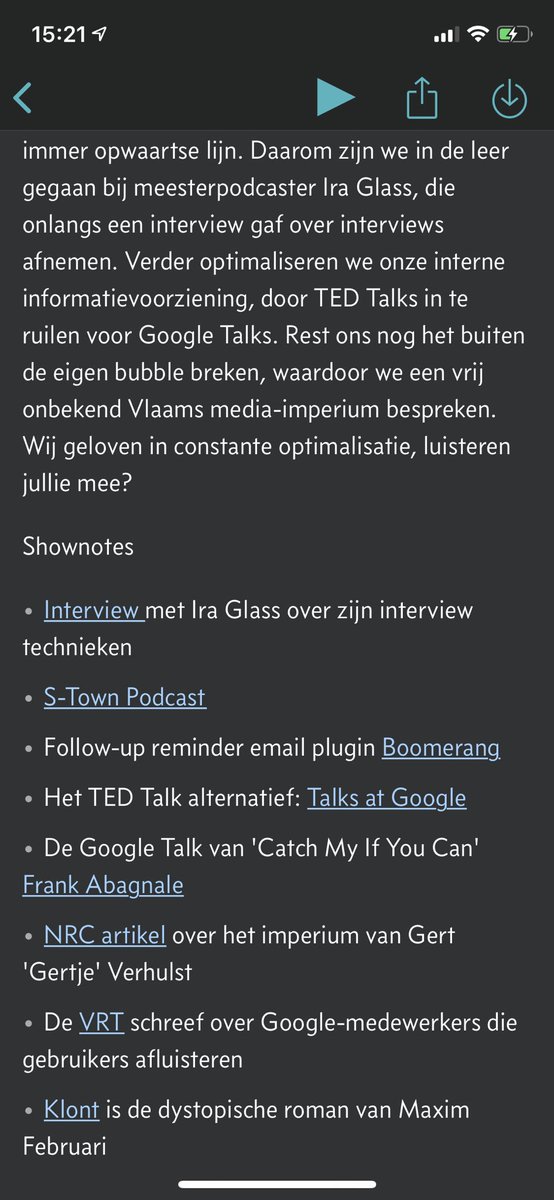 Wel fijn dat de shownotes er uiteindelijk wel bij zitten