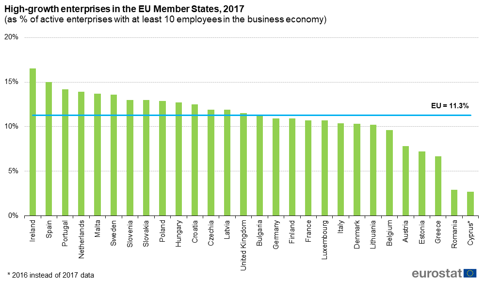 Did you know that... ... 1 in 10 enterprises in the EU classified as high-growth companies ❓ 📈 ... the highest share of high-growth enterprises is in 🇮🇪 Ireland ❓ ➡️ For more information: https://ec.europa.eu/eurostat/web/products-eurostat-news/-/DDN-20191210-1 … pic.twitter.com/Hw23dpF5nH