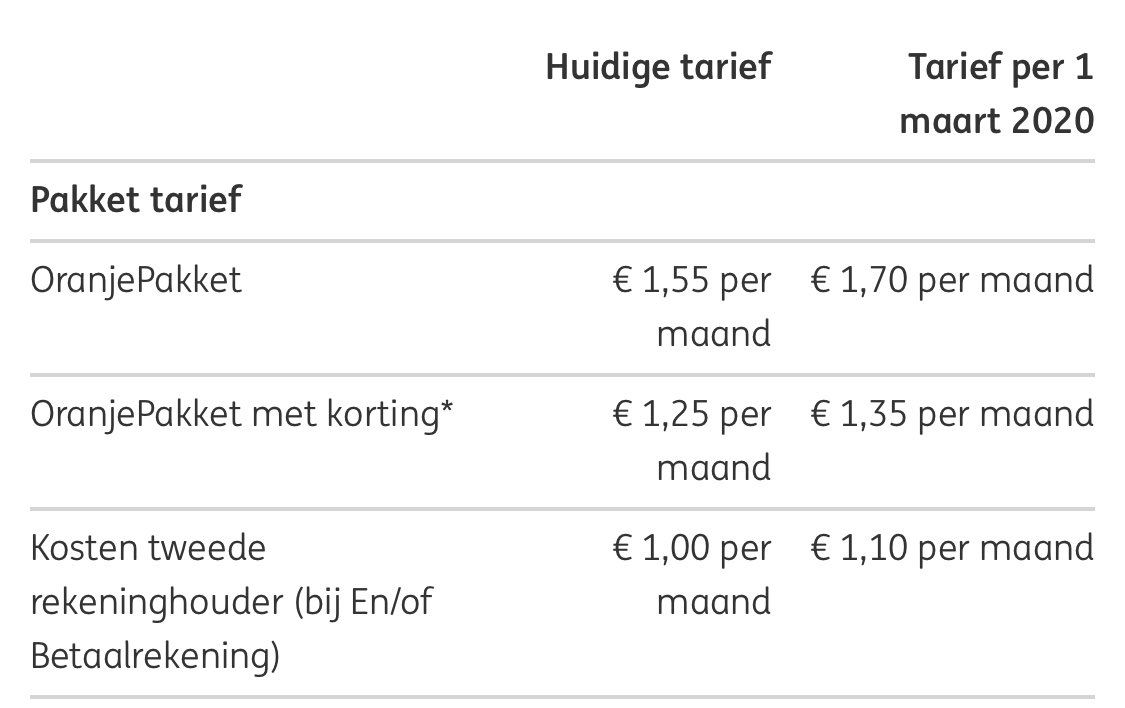 Nu dat de centrale bank rente laag blijft, gaan de kosten voor betaalrekeningen verder omhoog https://www.ing.nl/particulier/betalen/tarieven/wijziging-betaaltarieven-2020/oranjepakket.html … Een betalingssysteem kost geld, maar er is ook een maatschappelijk belang bij toegankelijkheid. Ben benieuwd wat de strategie is van ING, Rabo, ABN en de DNB.pic.twitter.com/uxiPynI2JO
