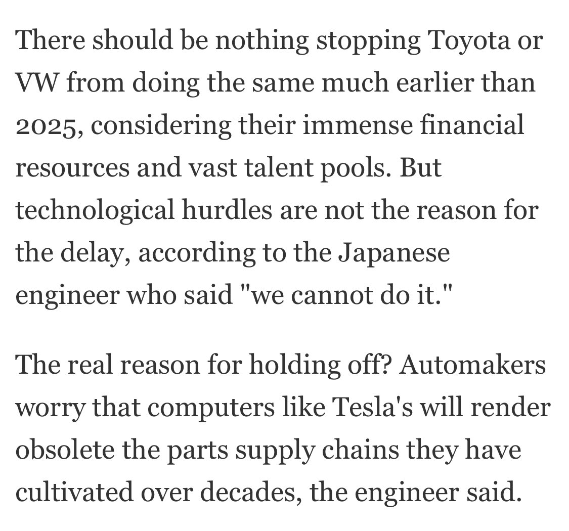 Toyota and Volkswagen not pushing harder on their suppliers is a special kind of Innovator’s Dilemma https://asia.nikkei.com/Business/Automobiles/Tesla-teardown-finds-electronics-6-years-ahead-of-Toyota-and-VW2 …pic.twitter.com/gzvTTCrttW