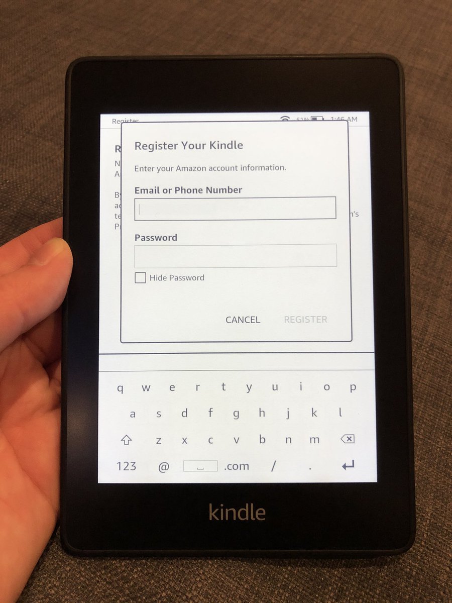 My new Kindle was supposed to come signed in, but failing that, a QR code login would have been really nice as opposed to typing a 64 random character passwordpic.twitter.com/Ega6O487L3