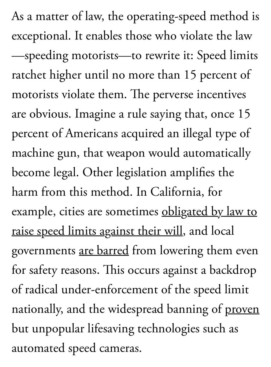 This blew my mind today: If enough drivers speed on an American road, the law requires the speed limit to be increased instead of enforcing the rules 🤯 https://www.theatlantic.com/ideas/archive/2019/07/car-crashes-arent-always-unavoidable/592447/ …pic.twitter.com/3CL0CBJHtB
