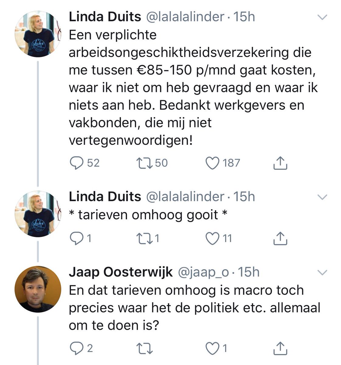 Dit is als mensen die onder protest stoppen met het gebruiken van plastic wegwerptasjes bij de supermarkt omdat ze nu 10 cent kosten