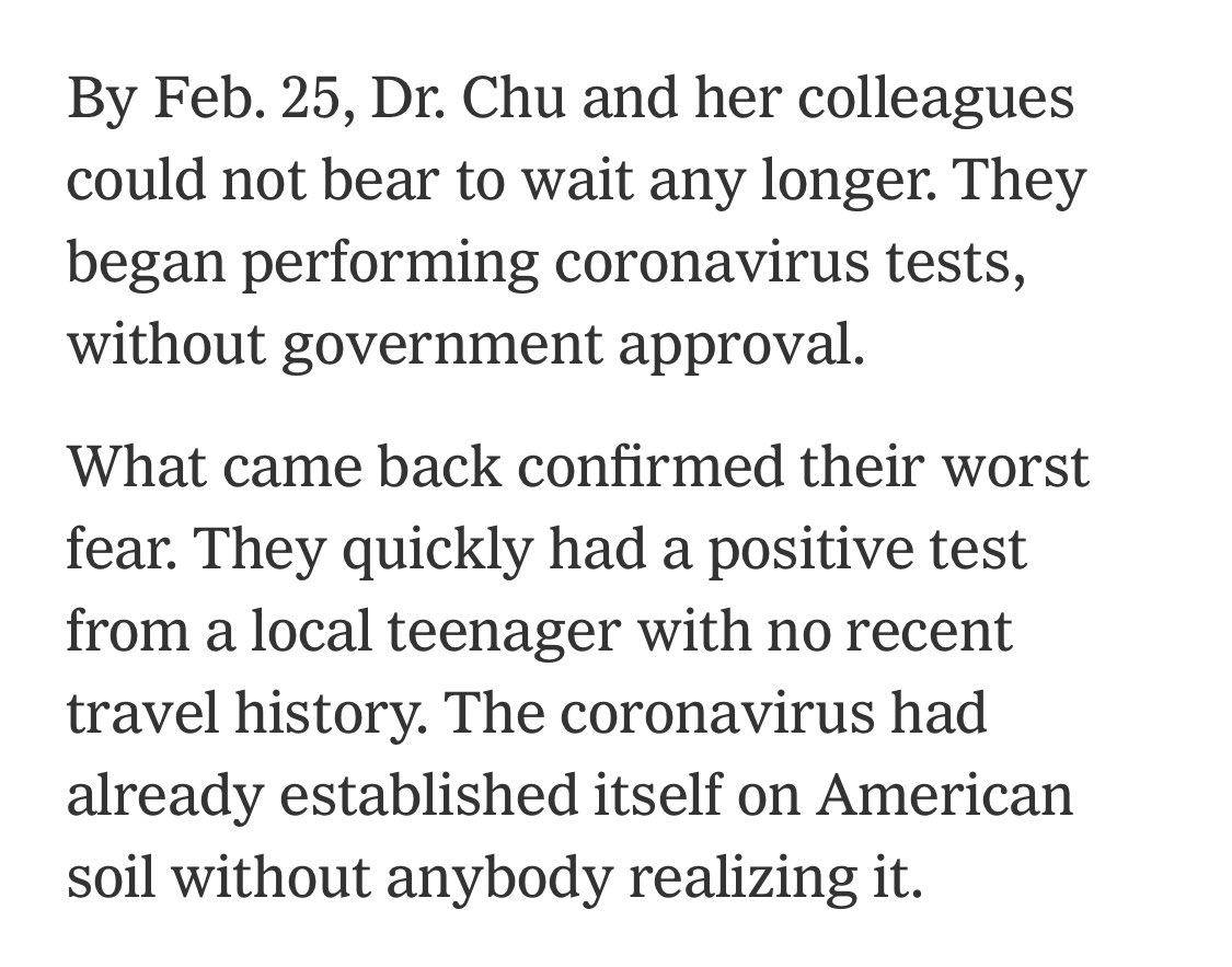 The US government could have found and stopped the coronavirus in Seattle for weeks, but instead refused to give permission for testing existing samples https://www.nytimes.com/2020/03/10/us/coronavirus-testing-delays.html …pic.twitter.com/uvpXaLcyaF