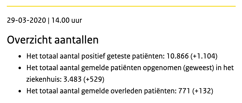 Ter vergelijking: 12 dagen geleden waren er nog maar 43 overleden patiënten https://www.rivm.nl/nieuws/actuele-informatie-over-coronavirus …pic.twitter.com/fi5z3Dn2w8