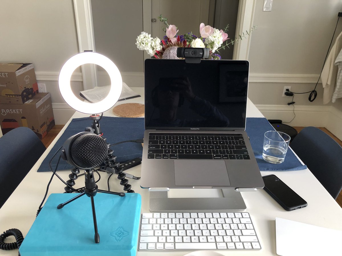 Werk je dubbele inlog in video conf: met iPhone in ringlight en dan laptop om je collega’s te zien?