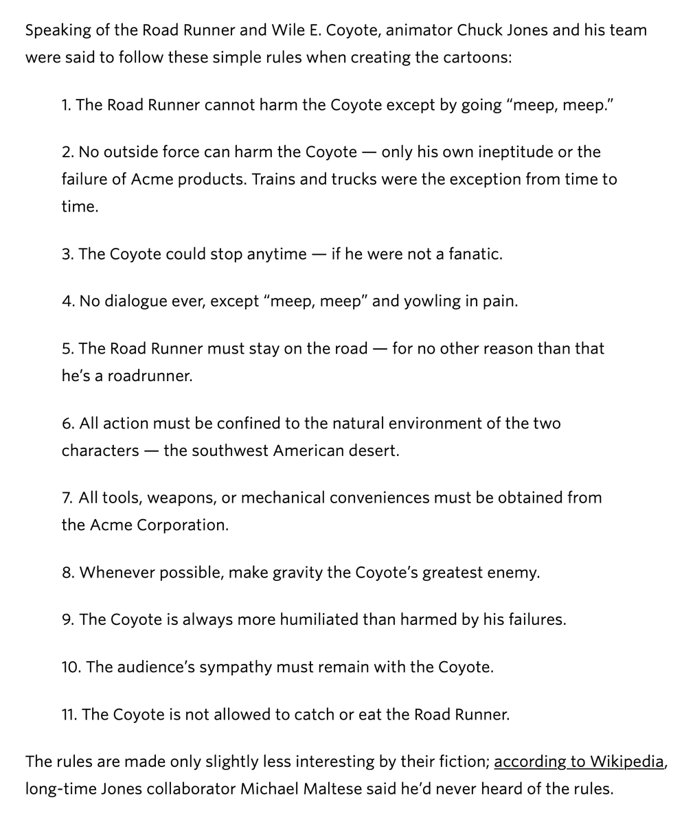 Road Runner Rules https://kottke.org/12/03/the-rules-of-road-runner-and-wile-e-coyote-cartoons …pic.twitter.com/ub4k4CvttI