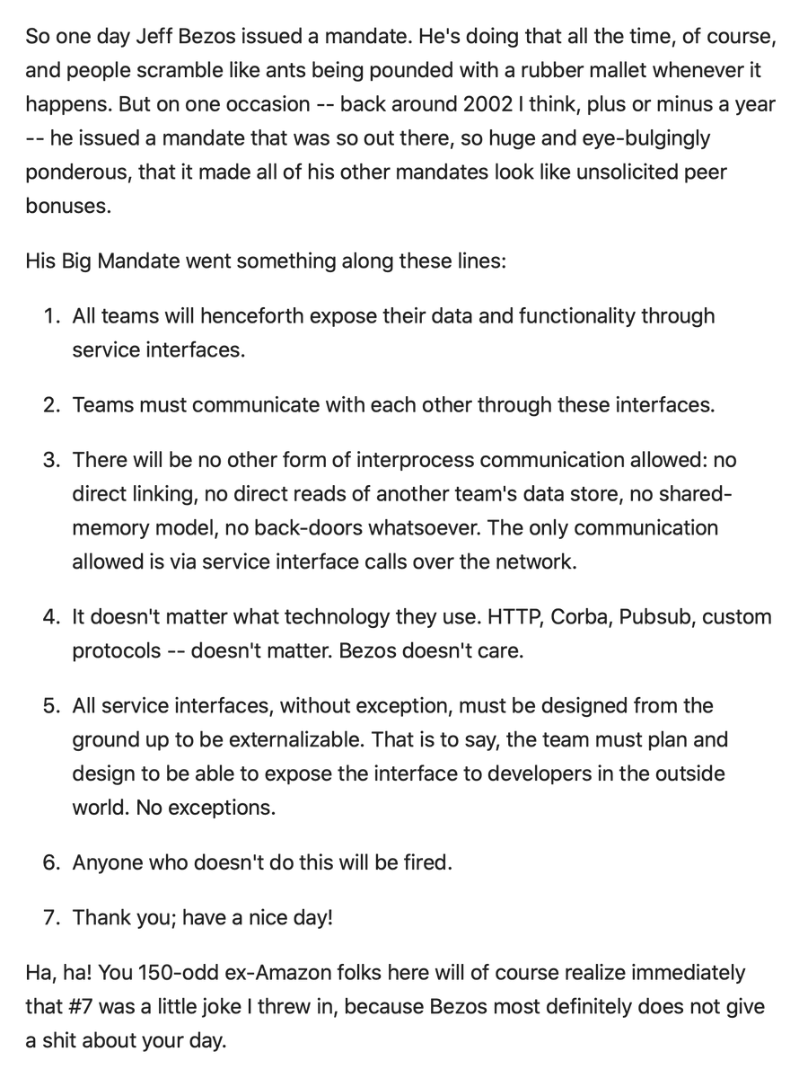 The Platform Rant by @Steve_Yegge remains a great read https://gist.github.com/chitchcock/1281611 …pic.twitter.com/pOub13KZXU
