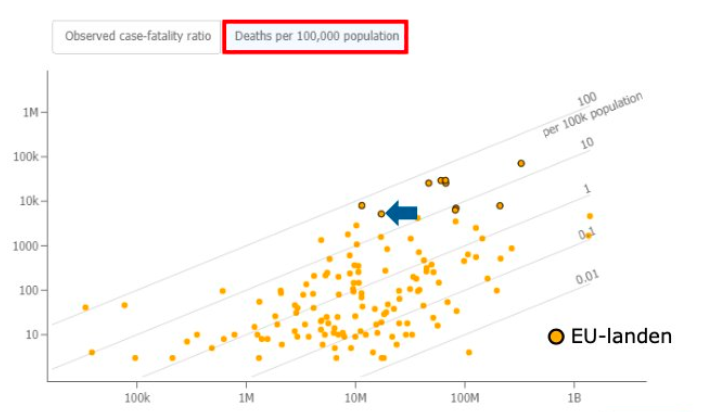 Van Dissel geeft drie briefings lang, sinds 16 april, verkeerde informatie aan de Kamer over het relatieve dodental in Nederland. Met een grafiek waarop 'meest getroffen landen' 'EU-landen' zijn geworden. Kamer heeft er geen vragen over, wel bedankjes voor de fijne briefing weer.