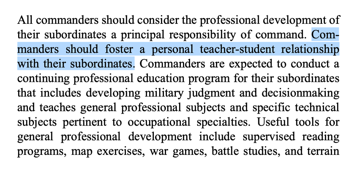 “Commanders should foster a personal teacher-student relationship with their subordinates” https://www.marines.mil/portals/1/Publications/MCDP%201%20Warfighting%20GN.pdf …pic.twitter.com/vjtuZgPtPc