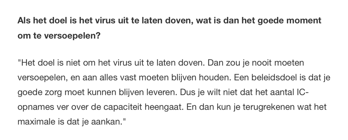 Dat klopt niet helemaal. Hij heeft een strategie gekozen: "Maximale controle". En kiest daarbij de maatregelen die de experts adviseren: een "Dashboard", "testen", en "Contact tracing" Asscher vraagt ook expliciet naar de gekozen strategie in het debat:https://youtu.be/ToA4J_82RBk?t=13081 …