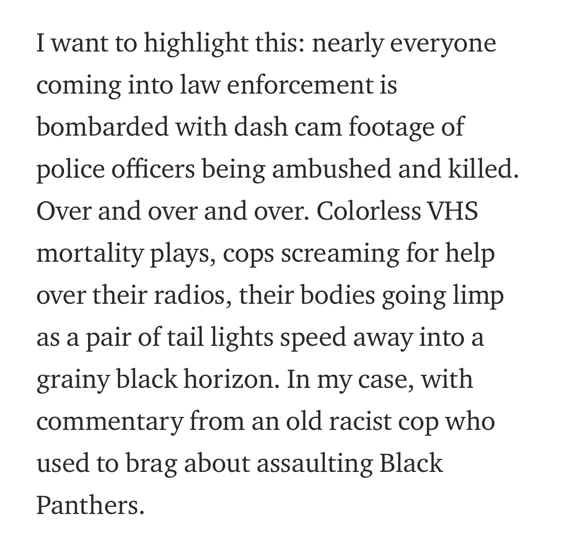 Is the article written by an actual former cop? Impossible to tell. Does it align with my views and is it therefore worth sharing? Absolutely! Welcome to the internet