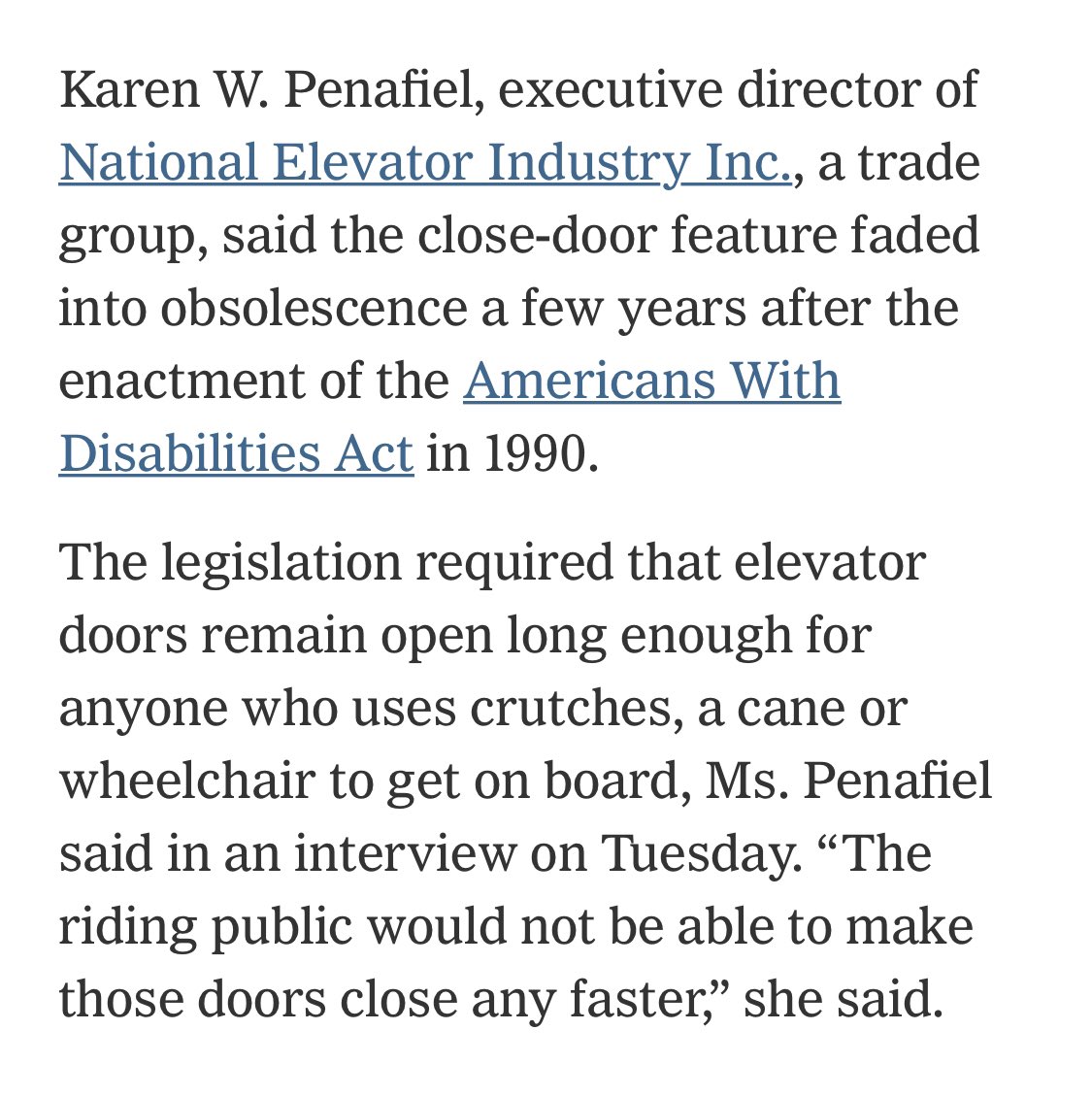 “Karen W. Penafiel, executive director of National Elevator Industry, a trade group, said the close-door feature faded into obsolescence” https://www.nytimes.com/2016/10/28/us/placebo-buttons-elevators-crosswalks.html …pic.twitter.com/WMnHA6wpbc