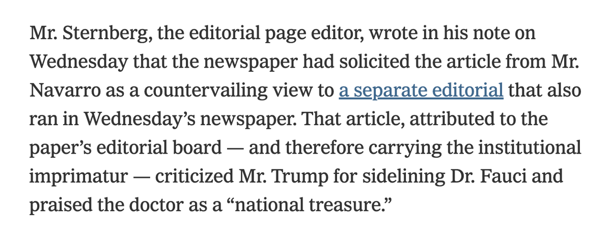 It is crazy that the USA Today even publishes this attack on Fauci by Navarro https://www.usatoday.com/story/opinion/todaysdebate/2020/07/14/anthony-fauci-wrong-with-me-peter-navarro-editorials-debates/5439374002/ …