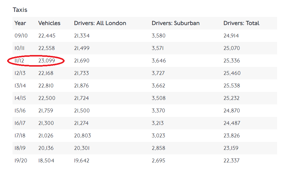 Updated TfL figures today show that for the first time since records began there are fewer then 17k registered black cabs in London, down from a high of over 23k in 2011/12. A decrease of over 26%pic.twitter.com/qrYeaIZJWx