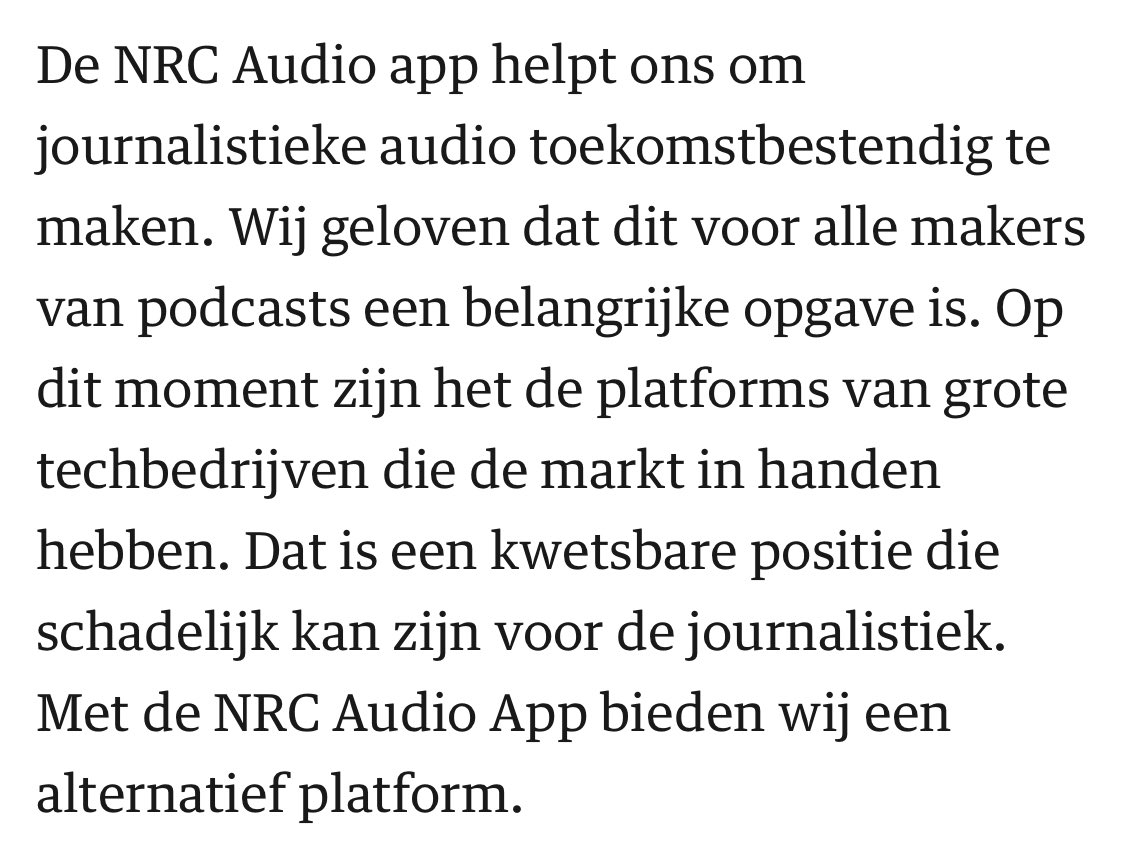 De NRC Audio app ziet er goed uit en dit is nobel, maar wat is de strategie? https://www.nrc.nl/nieuws/2020/10/25/nrc-lanceert-nrc-audio-a4017313 …pic.twitter.com/FAlo73DAuA