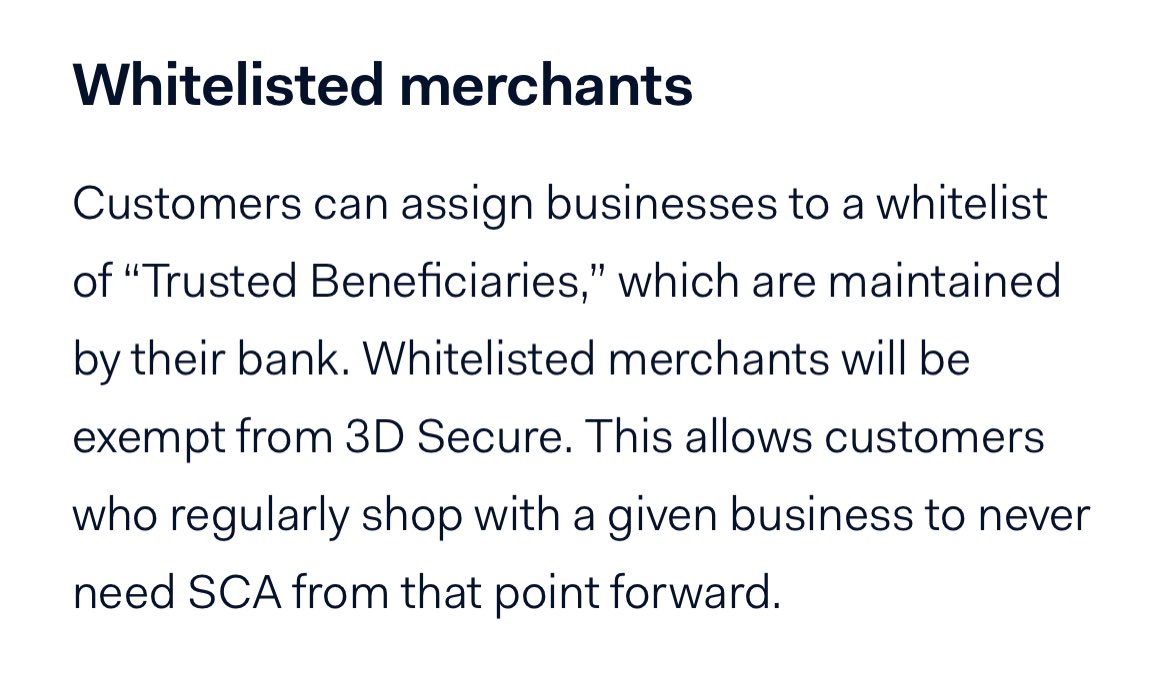 Interesting! I assume the setup process also whitelists you as a merchant, so you are mostly exempt from the SCA thresholds?pic.twitter.com/RrXmC0IEak