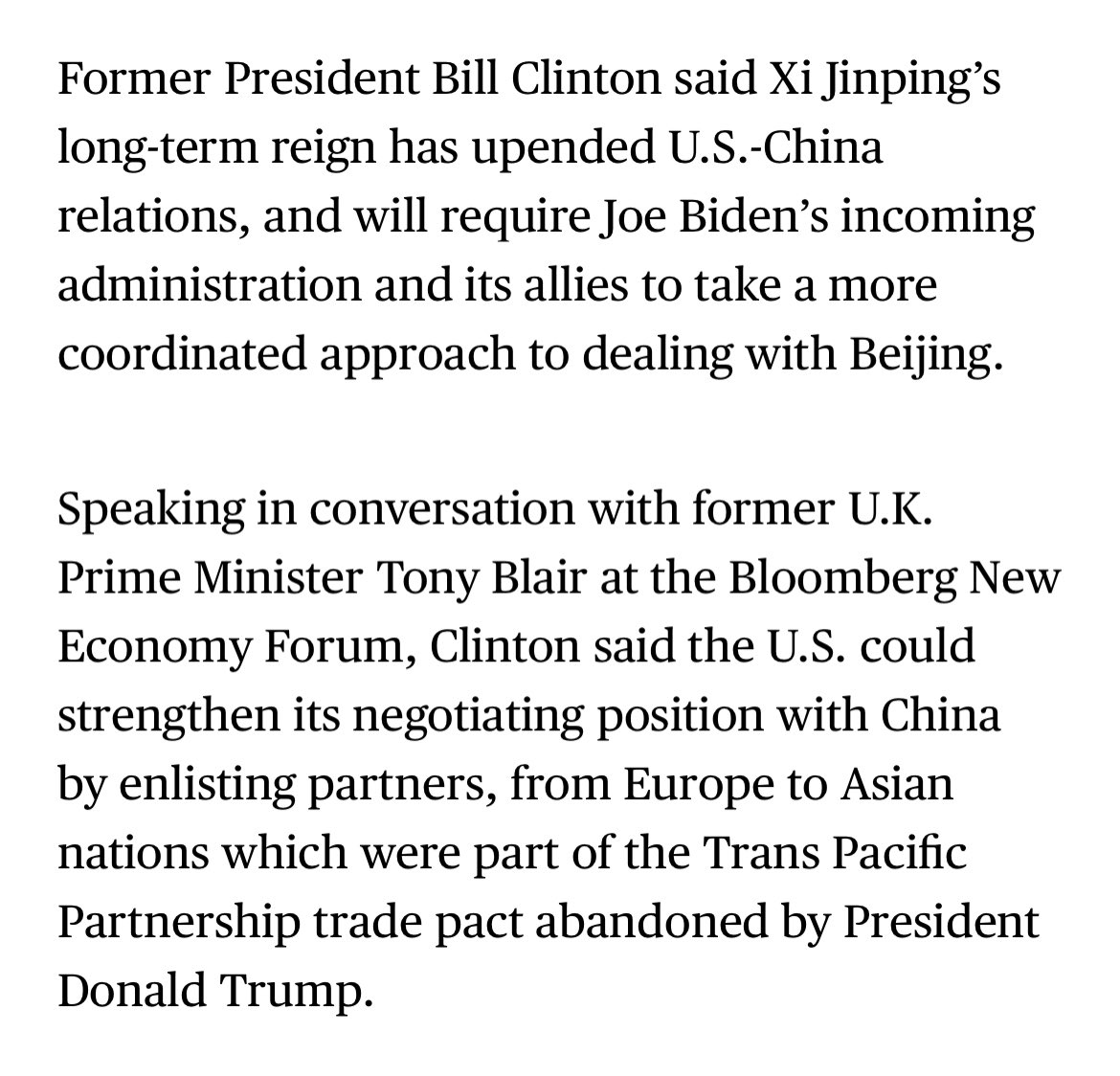 It’s interesting to see both Clinton and Obama signal a harder China policy https://www.bloomberg.com/news/articles/2020-11-17/bill-clinton-says-china-s-direction-under-xi-upended-u-s-ties … https://www.theatlantic.com/ideas/archive/2020/11/why-obama-fears-for-our-democracy/617087/ …pic.twitter.com/Zj98Pc5llK