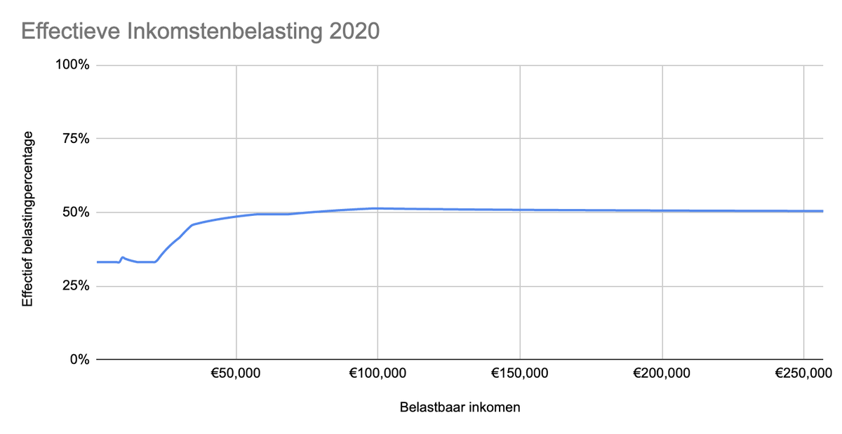 Nu de belastingdruk inclusief de maximale zorg- en huurtoeslag voor een eenpersoonshuishouden tussen de 23 en 66 jaar: - Geen belasting met een inkomen onder €12.500 - 50% belasting bij meer dan €35.000 aan inkomen Zie ook de spreadsheet: https://docs.google.com/spreadsheets/d/10LbyxgXOBGVI_E9X3NtKPMfILSD9W0k_kYeEQuJfIco/ …pic.twitter.com/k0aw7ZJMwG