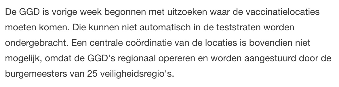 De hele tijd horen we: "we zijn er klaar voor, mensen geen probleem, komt goed allemaal." Maar zodra het puntje in het buurt van het paaltje komt, gaat het toch weer niet lukken. #GGD #vaccin https://nos.nl/nieuwsuur/artikel/2360958-vws-eerste-vaccinatie-voor-18-januari-eerder-als-het-lukt.html … pic.twitter.com/gKvqhsgwNA