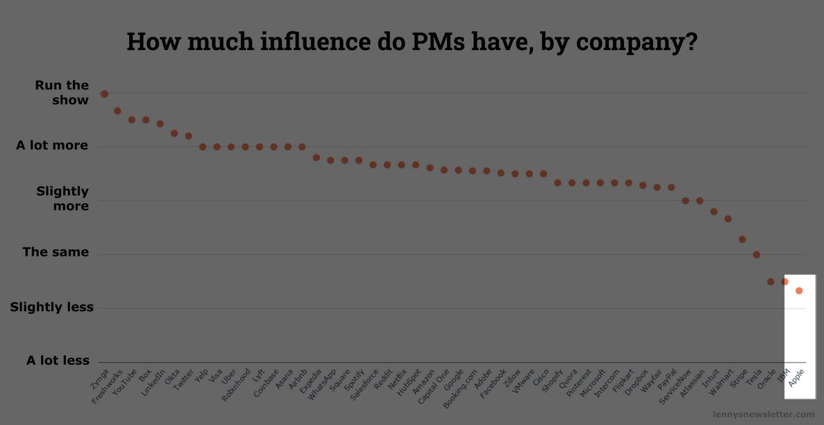 Not sure what the sample size is, but being a product manager at Apple sure seems to suck https://www.lennyrachitsky.com/p/product-management-survey …pic.twitter.com/wjDoP9HFY4
