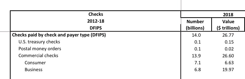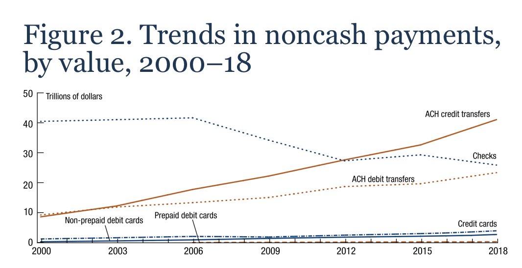 “But, Thijs, do Americans really still use checks?” Yes, 14 billion per year to be precise. To transfer $26 trillion. https://www.federalreserve.gov/paymentsystems/2019-December-The-Federal-Reserve-Payments-Study.htm … https://www.federalreserve.gov/paymentsystems/fr-payments-study.htm …pic.twitter.com/L58x0bVaRo