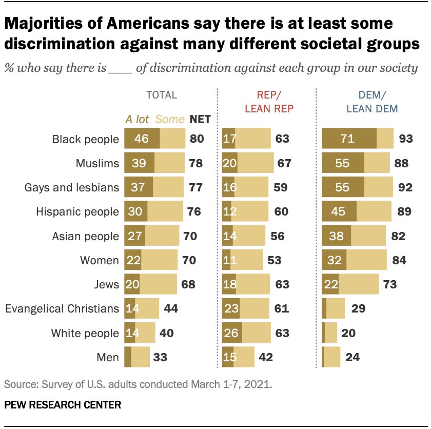 Republicans are not ok https://www.pewresearch.org/fact-tank/2021/03/18/majorities-of-americans-see-at-least-some-discrimination-against-black-hispanic-and-asian-people-in-the-u-s/ …pic.twitter.com/IK0IwntFib