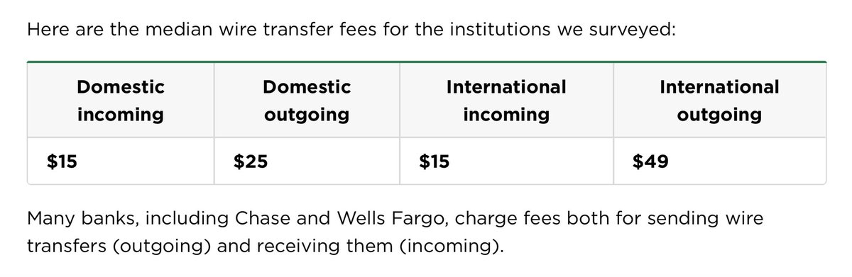 Yup, wire fees are nuts https://www.nerdwallet.com/article/banking/wire-transfers-what-banks-charge …pic.twitter.com/WW7Mr3WAIG