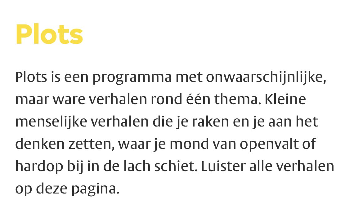 Volgens mij is er genoeg ruimte in Nederland voor een podcast zoals This American Life https://www.thisamericanlife.org Werktitel: Polderleven