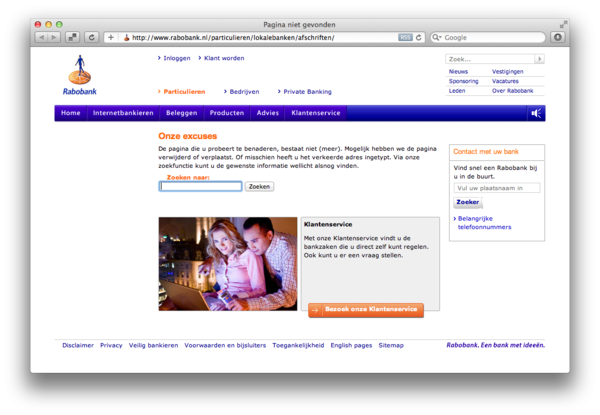 De Rabobank webpagina over het niet meer ontvangen van afschriften is… niet aanwezig.pic.twitter.com/G2VSebNM